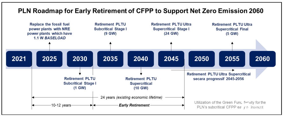 公開(kāi)信息顯示,能礦部與PLN目前已完成了提前退役的初步工作方案,其內(nèi)容與能礦部長(zhǎng)在COP 26會(huì)上的演講內(nèi)容基本一致(如下圖所示)[13]。